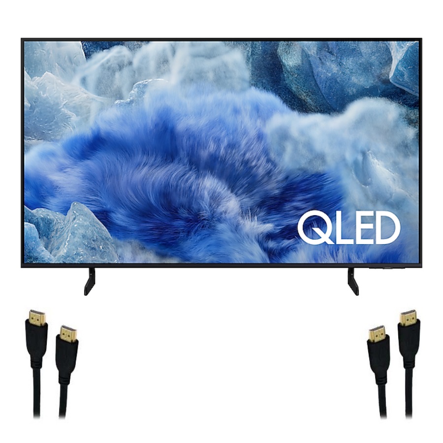 Includes: 1x Samsung - 55 inch 4K UHD HDR QLED Tizen Smart TV - 2025, 2x Hometech - HDMI Premium Cable Mesh Braided Cord High Speed - 6 ft.